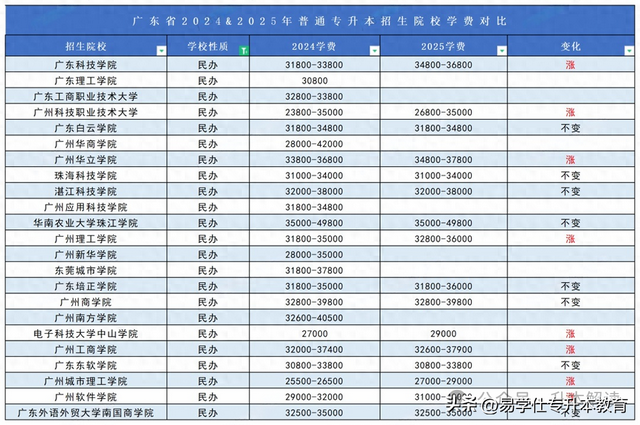 例如广东专升本民办院校学费,普遍都在3万/年以上,甚至有的院校还在逐年上涨。